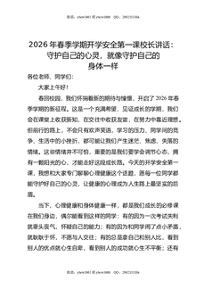 2026年春季学期开学安全第一课校长讲话:守护自己的心灵,就像守护自己的身体一样.docx