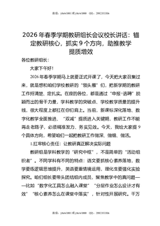 2026年春季学期教研组长会议校长讲话:锚定教研核心,抓实9个方向,助推教学提质增效.docx