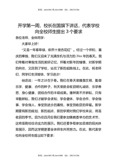开学第一周,校长在国旗下讲话,代表学校向全校师生提出3个要求.docx