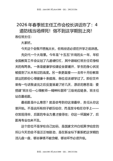 2026年春季班主任工作会校长讲话炸了:4道防线当场焊死!做不到这学期别上岗!.docx