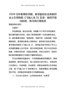 2026马年春季新学期,教学副校长全体教师会上引用电影《飞驰人生3》发言:驰而不息向新程,策马笃行育桃李.docx