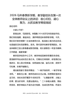 2026马年春季新学期,教学副校长在第一次全体教师会议上的讲话:收心归位,凝心聚力,从抓实教学常规做起.docx
