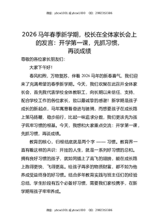 2026马年春季新学期,校长在全体家长会上的发言:开学第一课,先抓习惯,再谈成绩.docx