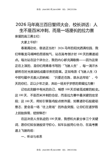 2026马年高三百日誓师大会,校长讲话:人生不是百米冲刺,而是一场漫长的拉力赛.docx