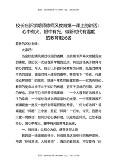 校长在新学期师德师风教育第一课上的讲话:心中有火,眼中有光,做新时代有温度的教育追光者.docx