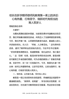 校长在新学期师德师风教育第一课上的讲话:心有热爱,行有坚守,做新时代有担当的育人筑梦人.docx