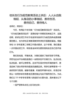 校长在行为规范教育活动上讲话:人人从自我做起,从身边的小事做起,善待生活,善待自己,善待他人.docx