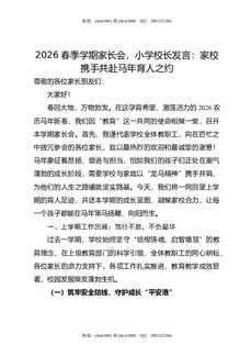 2026春季学期家长会,小学校长发言:家校携手共赴马年育人之约.docx