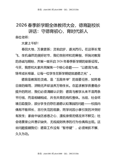 2026春季新学期全体教师大会,德育副校长讲话:守德育初心,育时代新人.docx
