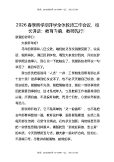 2026春季新学期开学全体教师工作会议,校长讲话:教育向前,教师先行!.docx