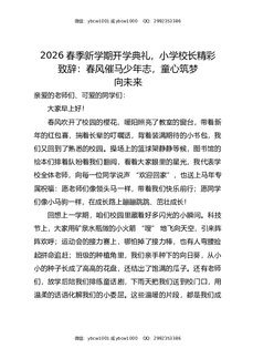 2026春季新学期开学典礼,小学校长精彩致辞:春风催马少年志,童心筑梦向未来.docx