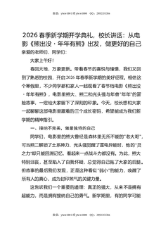 2026春季新学期开学典礼,校长讲话:从电影《熊出没,年年有熊》出发,做更好的自己.docx