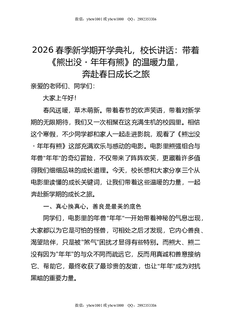 2026春季新学期开学典礼,校长讲话:带着《熊出没,年年有熊》的温暖力量,奔赴春日成长之旅.docx