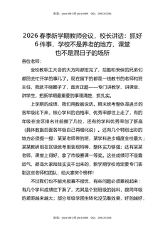 2026春季新学期教师会议,校长讲话:抓好6件事,学校不是养老的地方,课堂也不是混日子的场所.docx