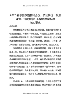 2026春季新学期教师会议,校长讲话:聚焦课堂,深度教学!新学期教学6项核心要求.docx