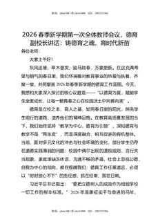 2026春季新学期第一次全体教师会议,德育副校长讲话:铸德育之魂,育时代新苗.docx