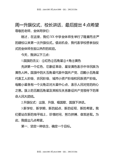 周一升旗仪式,校长讲话,最后提出4点希望.docx