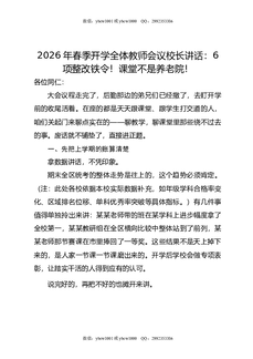2026年春季开学全体教师会议校长讲话:6项整改铁令!课堂不是养老院!.docx