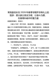 常务副校长在2026年春季学期开学典礼上的致辞:愿大家以务实为笔,以奋斗为墨,在春寒料峭中积蓄力量.docx
