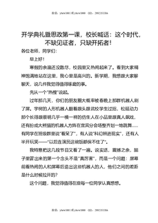 开学典礼暨思政第一课,校长喊话:这个时代,不缺见证者,只缺开拓者!.docx