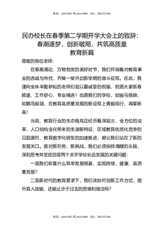 民办校长在春季第二学期开学大会上的致辞:春潮逐梦,创新破局,共筑高质量教育新篇.docx