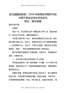 龙马扬鞭启新程!2026年春季新学期开学前中层干部会议校长讲话金句频出,建议收藏.docx