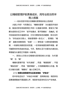 以精细管理护航青春成长,用专业担当筑牢育人根基——校长在初中班主任精细化管理培训会上的讲话.docx