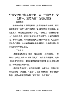 分管安全副校长工作计划:以“生命至上、安全第一、预防为主”为核心理念.docx