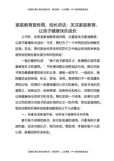 家庭教育宣传周,校长讲话:关注家庭教育,让孩子健康快乐成长.docx
