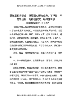 新教师培训会议,校长讲话:要敬重教育事业,就要潜心研究业务,不浮躁,不急功近利,耐得住寂寞,经得住诱惑.docx