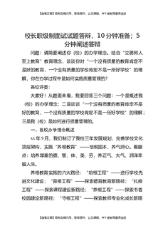 校长职级制面试试题答辩,10分钟准备;5分钟阐述答辩.docx