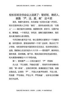 校长在班主任会议上说透了:管好班、育好人,就靠“严,法,度,教”这4招.docx