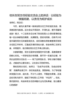 校长在班主任经验交流会上的讲话:以经验为梯强班建,以责任为炬护成长.docx