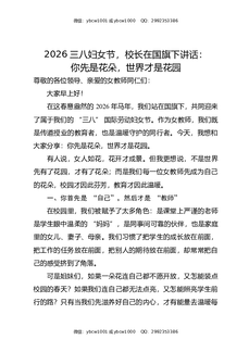 2026三八妇女节,校长在国旗下讲话:你先是花朵,世界才是花园.docx