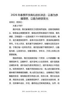 2026年春季开学典礼校长讲话:以春为序播理想,以勤为耕获荣光.docx