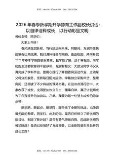 2026年春季新学期开学德育工作副校长讲话:以自律诠释成长,以行动彰显文明.docx