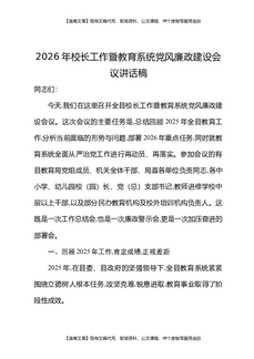 2026年校长工作暨教育系统党风廉政建设会议讲话.docx