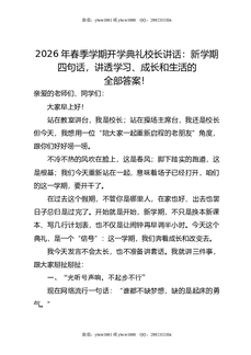 2026年春季学期开学典礼校长讲话:新学期四句话,讲透学习,成长和生活的全部答案!.doc