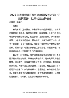 2026年春季学期开学初德育副校长讲话:怀揣新期许,以新状态赴新使命.doc