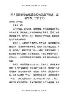 315国际消费者权益日校长国旗下讲话:诚信为本,守责于心.doc