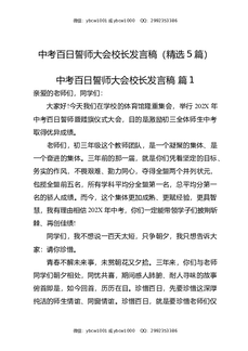 中考百日誓师大会校长发言稿(精选5篇).docx