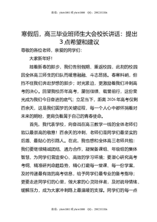 寒假后,高三毕业班师生大会校长讲话:提出3点希望和建议.doc