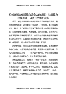 校长在班主任经验交流会上的讲话:以经验为梯强班建,以责任为炬护成长.docx