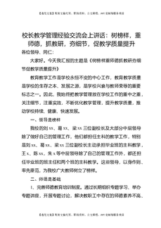 校长教学管理经验交流会上讲话:树榜样,重师德,抓教研,夯细节,促教学质量提升.docx
