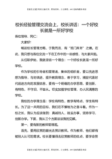 校长经验管理交流会上,校长讲话:一个好校长就是一所好学校.docx