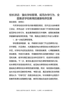 校长讲话:强化学校管理,规范办学行为,全面推进学校教育的健康有序发展.docx