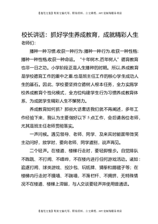 校长讲话:抓好学生养成教育,成就精彩人生.docx