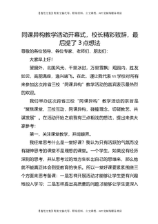 同课异构教学活动开幕式,校长精彩致辞,最后提了3点想法.docx