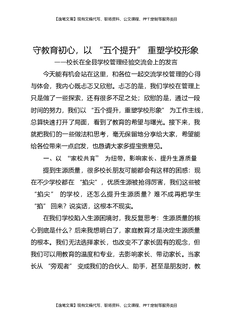 守教育初心,以“五个提升”重塑学校形象——校长在全县学校管理经验交流会上的发言.docx