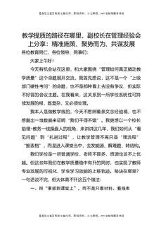 教学提质的路径在哪里,副校长在管理经验会上分享:精准施策、聚势而为、共谋发展.docx